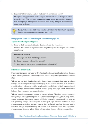 Pengajaran Topik D: Mendengar karena Bunyi (5 JP)