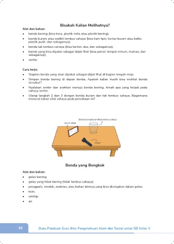 • Simpan benda bening di depan benda. Apakah kalian masih bisa melihat benda