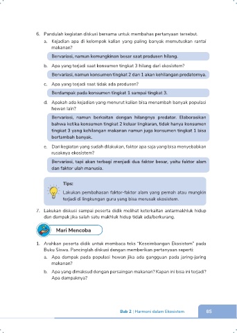 7. Lakukan diskusi sampai peserta didik melihat keterkaitan antarmakhluk hidup