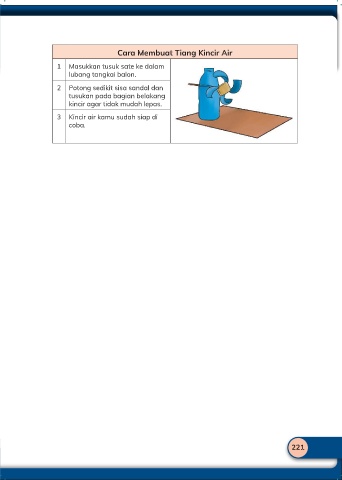 Cara Membuat Tiang Kincir Air 1 Masukkan tusuk sate ke dalam lubang tangkai balon. 2 Potong sedikit sisa sandal dan tusukan pada bagian belakang kincir agar tidak mudah lepas. 3 Kincir air kamu sudah siap di coba. 221