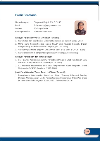 Nama Lengkap : Fitriyawati Gojali S.Si, S.Pd.SD