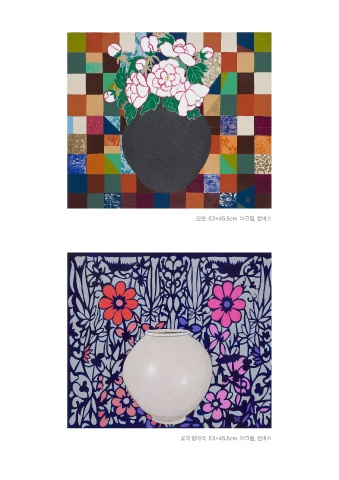 모란 53x45.5cm 아크릴, 캔버스 꽃과 항아리 53x45.5cm 아크릴, 캔버스