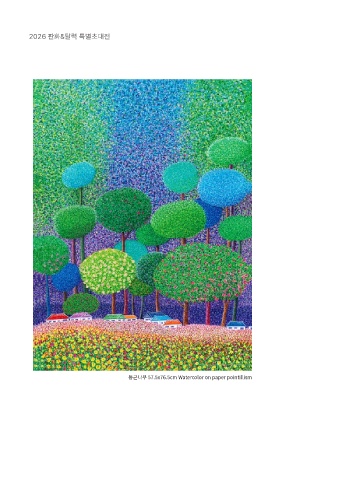 2026 판화&달력 특별초대전 둥근나무 57.5x76.5cm Watercolor on paper pointillism