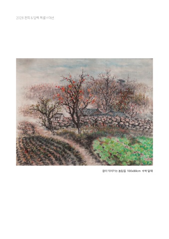 2026 판화 & 달력 특별초대전 감이 익어가는 돌담집 100x80cm 수묵 담채