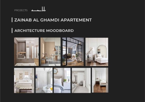 PROJECTS PROJECTS ZAINAB AL GHAMDI APARTEMENT Jeddah - KSA ZAINAB AL GHAMDI APARTEMENT ARCHITECTURE MOODBOARD 3d render visualisation of the project interior design