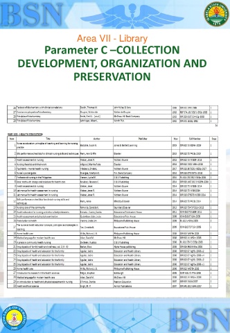 Area VII - Library Parameter C –COLLECTION DEVELOPMENT, ORGANIZATION AND PRESERVATION