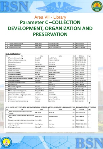 Area VII - Library Parameter C –COLLECTION DEVELOPMENT, ORGANIZATION AND PRESERVATION