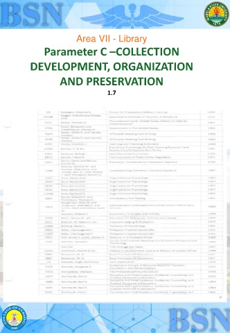 Area VII - Library Parameter C –COLLECTION DEVELOPMENT, ORGANIZATION AND PRESERVATION 1.7