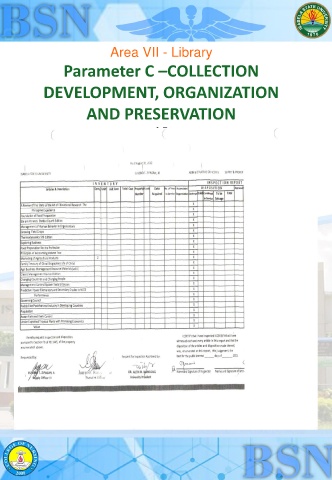 Area VII - Library Parameter C –COLLECTION DEVELOPMENT, ORGANIZATION AND PRESERVATION 1.7