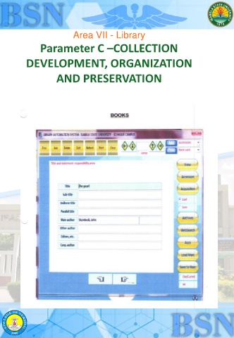 Area VII - Library Parameter C –COLLECTION DEVELOPMENT, ORGANIZATION AND PRESERVATION