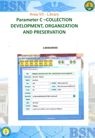 Area VII - Library Parameter C –COLLECTION DEVELOPMENT, ORGANIZATION AND PRESERVATION
