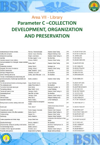 Area VII - Library Parameter C –COLLECTION DEVELOPMENT, ORGANIZATION AND PRESERVATION