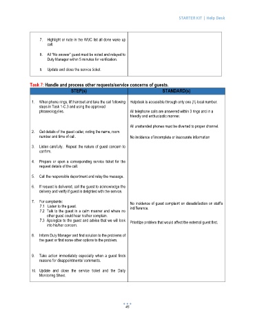 7.3 Apologize to the guest and advise that we will look Prioritize problem that would affect the external guest first.