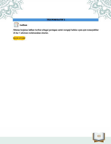 TES FORMATIF 2 Latihan Silakan kerjakan latihan berikut sebagai persiapan untuk menguji hafalan ayat-ayat mutasyabihat di Juz 1 sebelum melaksanakan sima'an. 69