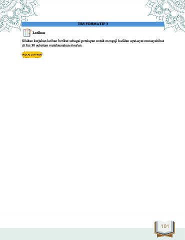 TES FORMATIF 3 Latihan Silakan kerjakan latihan berikut sebagai persiapan untuk menguji hafalan ayat-ayat mutasyabihat di Juz 30 sebelum melaksanakan sima'an. 101