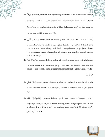 2) ْفار منْا (Inhiraf), menurut bahasa; condong. Menurut istilah; huruf ketika terucap