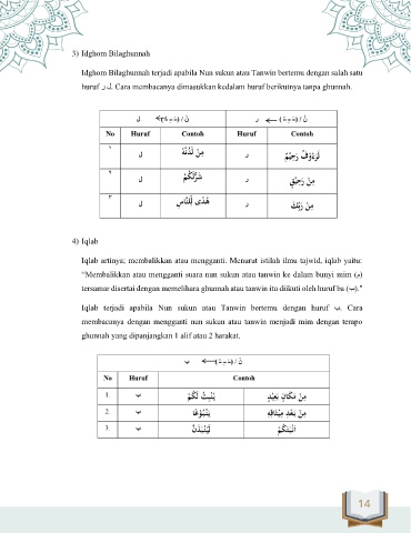Idghom Bilaghunnah terjadi apabila Nun sukun atau Tanwin bertemu dengan salah satu