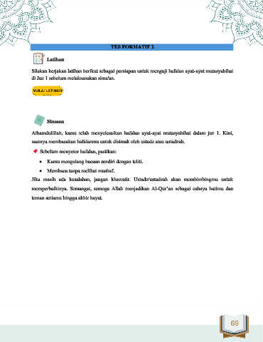 Silakan kerjakan latihan berikut sebagai persiapan untuk menguji hafalan ayat-ayat mutasyabihat