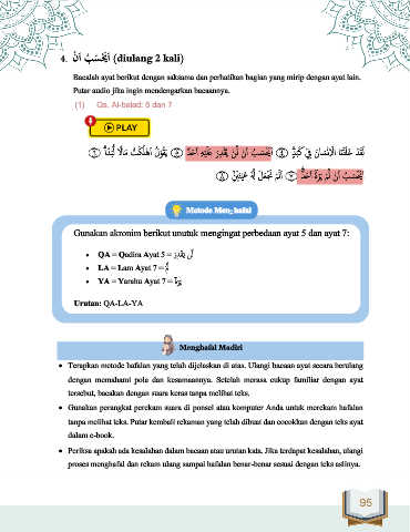 tanpa melihat teks. Putar kembali rekaman yang telah dibuat dan cocokkan dengan teks ayat