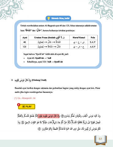 Untuk membedakan antara Al-Baqarah ayat 48 dan 123, fokus utamanya adalah urutan