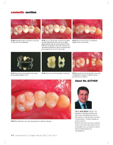 FIG 43: All-porcelain crown and porcelain inlay on FIG 44: Close-up view of the porcelain restorations FIG 45: Preparation for an all-porcelain crown with