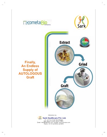 Finally, An Endless Supply of AUTOLOGOUS Graft Marketed by: Sark Healthcare Pvt. Ltd. Sark J-8, 1st Floor, East Vinod Nagar, Opp. Mayur Vihar-II, Delhi-110091 Email:- info@sarkcare.com, website: www.sarkcare.com Helpline: +91-011-22780060, 22784853