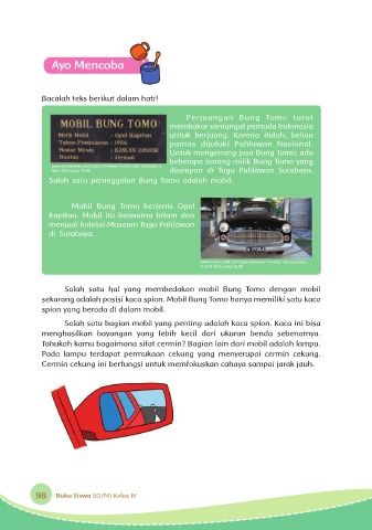 sekarang adalah posisi kaca spion. Mobil Bung Tomo hanya memiliki satu kaca
