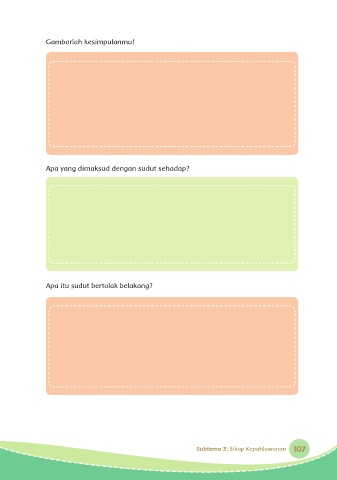 Gambarlah kesimpulanmu! Apa yang dimaksud dengan sudut sehadap? Apa itu sudut bertolak belakang? Subtema 3: Sikap Kepahlawanan 107