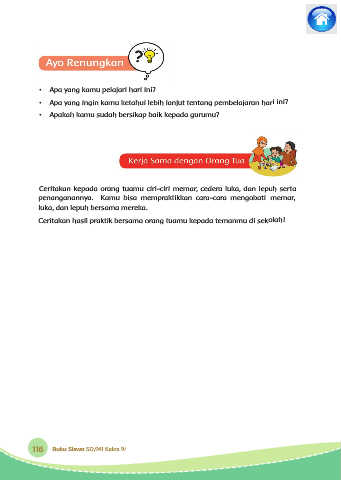 Ceritakan hasil praktik bersama orang tuamu kepada temanmu di sekolah!