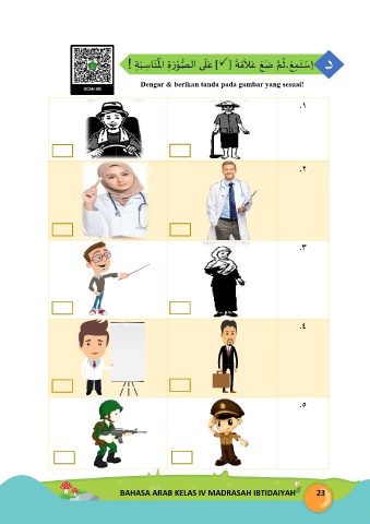 Dengar & berikan tanda pada gambar yang sesuai! ١ . ٢ . ٣ . ٤ . ٥ . BAHASA ARAB KELAS IV MADRASAH IBTIDAIYAH 23