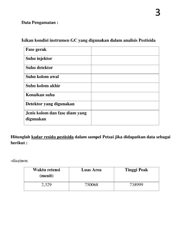 Isikan kondisi instrumen GC yang digunakan dalam analisis Pestisida
