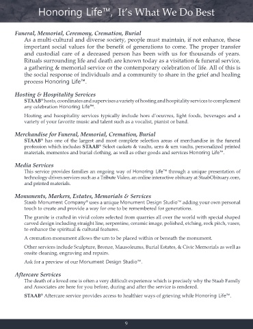 profession which includes STAAB Select caskets & vaults, urns & urn vaults, personalized printed