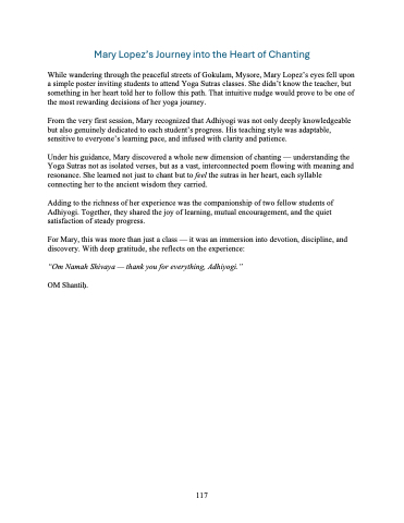 Under his guidance, Mary discovered a whole new dimension of chanting — understanding the Yoga Sutras not as isolated verses, but as a vast, interconnected poem flowing with meaning and resonance. She learned not just to chant but to feel the sutras in her heart, each syllable connecting her to the ancient wisdom they carried.