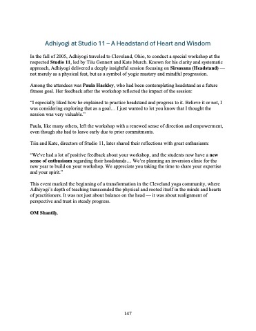 This event marked the beginning of a transformation in the Cleveland yoga community, where Adhiyogi’s depth of teaching transcended the physical and rooted itself in the minds and hearts of practitioners. It was not just about balance on the head — it was about realignment of perspective and trust in steady progress.