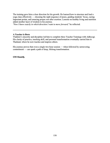 Vladimir’s sincerity and discipline led him to complete three Teacher Trainings with Adhiyogi. His clarity of practice, teaching skill, and personal transformation eventually carried him to Thailand, where he now teaches and inspires others.