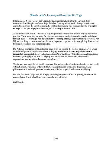 Nilesh Jade, a Yoga Teacher and Computer Engineer from Falls Church, Virginia, first encountered Adhiyogi’s Authentic Yoga Teacher Training with a spirit of deep curiosity and commitment. From the very beginning, he felt that the training was conducted in the true spirit of Yoga — not just as physical exercise, but as a complete way of life.