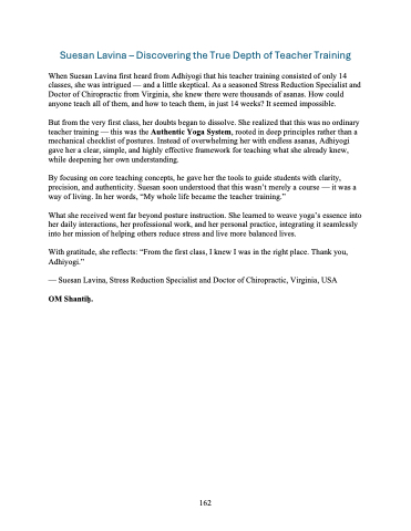 By focusing on core teaching concepts, he gave her the tools to guide students with clarity, precision, and authenticity. Suesan soon understood that this wasn’t merely a course — it was a way of living. In her words, “My whole life became the teacher training.”