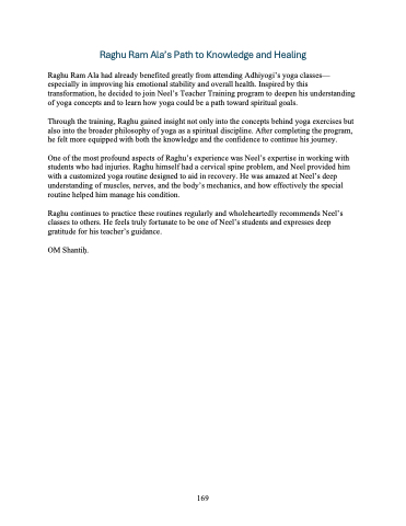 Through the training, Raghu gained insight not only into the concepts behind yoga exercises but also into the broader philosophy of yoga as a spiritual discipline. After completing the program, he felt more equipped with both the knowledge and the confidence to continue his journey.