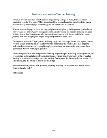 When she met Adhiyogi in Pune, her original plan was simply to join his general group classes. However, as her interest grew, he suggested she consider taking his Teacher Training program. At first, Nanda didn’t understand why she would need teacher training so early in her yoga journey. But once the program began, everything started to make sense.
