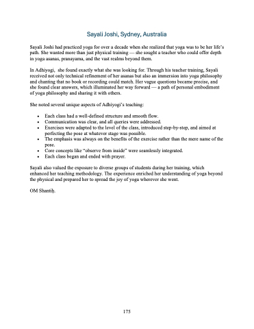 Sayali also valued the exposure to diverse groups of students during her training, which enhanced her teaching methodology. The experience enriched her understanding of yoga beyond the physical and prepared her to spread the joy of yoga wherever she went.