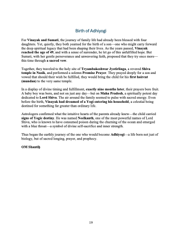 Thus began the earthly journey of the one who would become Adhiyogi—a life born not just of biology, but of sacred longing, prayer, and prophecy.