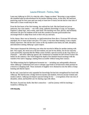 That respect deepened the following year when she traveled to Milan for another training with him. Once again, she stood out as the best student, not just for her ability, but for her sincerity. Laura personally requested that the Milan course include a special section on the Yoga Sutras of Patanjali — and when Adhiyogi agreed, she volunteered to translate his full 20-hour lecture into Italian for the audience. Her work bridged the depth of his Sanskrit-based teachings with the warmth of her native language, making them accessible without losing their essence.