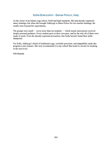 As the owner of an Italian yoga school, Sofia had high standards. She had already organized many trainings, but when she brought Adhiyogi to Sanse Polcro for two teacher trainings, the results were beyond her expectations.