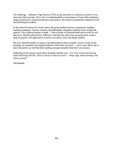 The Adhiyoga – Authentic Yoga System (AYS), as she describes it, is based on a series of very clear and valid concepts. Above all, it is understandable to newcomers to Yoga while remaining deeply beneficial to current practitioners and teachers. She always recommends reading his book and following his method.