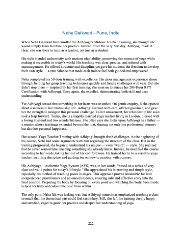 Her second Yoga Teacher Training with Adhiyogi brought fresh challenges. At the beginning of the course, Neha had some arguments with him regarding the structure of the class. But as the training progressed, she began to understand his unique — even “weird” — style. She realized that he never wasted time teaching something she already knew. Instead, he modified the course according to her needs, taking her out of her comfort zone. He trained her to be a versatile yoga teacher, instilling discipline and guiding her on how to practice with purpose.