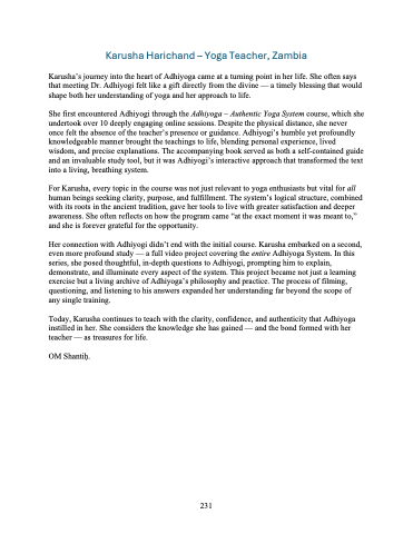 Today, Karusha continues to teach with the clarity, confidence, and authenticity that Adhiyoga instilled in her. She considers the knowledge she has gained — and the bond formed with her teacher — as treasures for life.