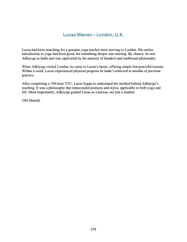 When Adhiyogi visited London, he came to Lucas’s home, offering simple but powerful lessons. Within a week, Lucas experienced physical progress he hadn’t achieved in months of previous practice.
