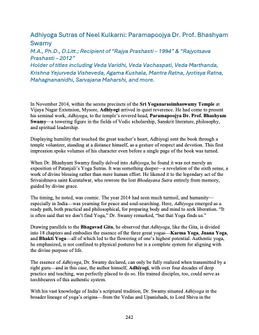 Adhiyoga Sutras of Neel Kulkarni: Paramapoojya Dr. Prof. Bhashyam Swamy