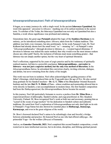 This work was not born in isolation. Neel often acknowledged the guiding presence of his father’s blessings, which had placed him on the Yoga path since the age of five. He also carried deep gratitude for his Sanskrit teachers—Dr. G. U. Thite of the Bhandarkar Oriental Research Institute and the late Shri N. N. Bhide of Pune—whose erudition and mentorship allowed him to write directly in Sanskrit, a rare accomplishment in modern times. His first Sanskrit composition had been the Hathayogasutrani; the Ishwarapranidhana Sutras became his second.