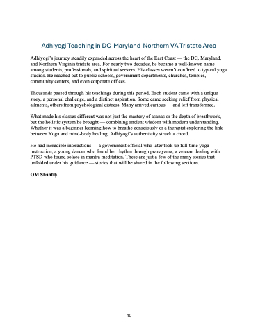 Adhiyogi Teaching in DC-Maryland-Northern VA Tristate Area